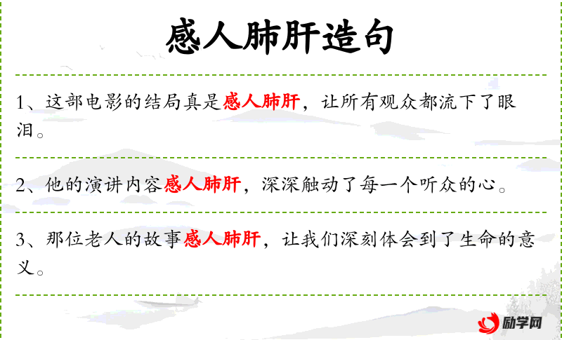 - 感人肺肝:形容故事非常感人,触及内心深处。