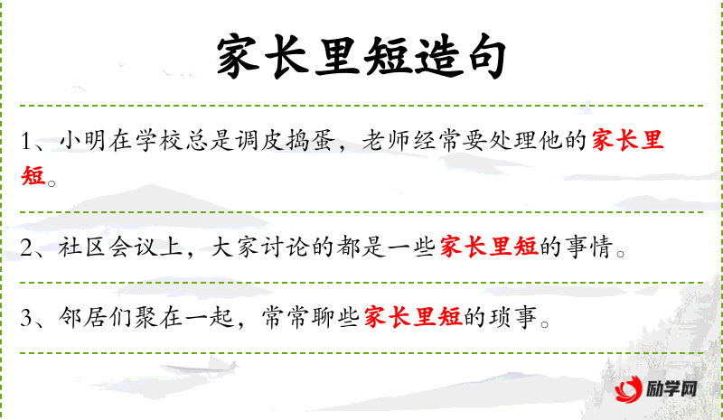 - 家长里短:反映了**人重视家庭和邻里关系的传统价值观。
