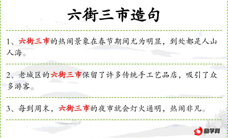句子:“六街三市的节日装饰总是五彩缤纷,增添了节日的气氛。”