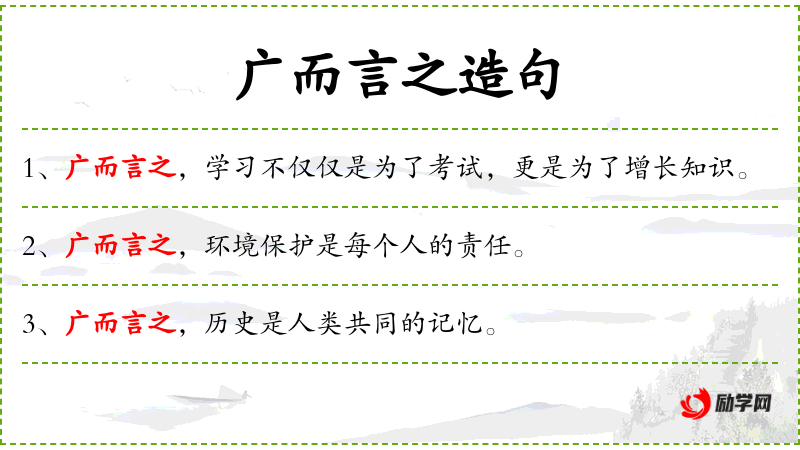 - 广而言之:表示从广泛的角度来看,强调普遍性和包容性。