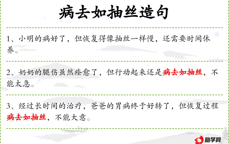 3. 【病去如抽丝】 - 形容病愈很快而且彻底。