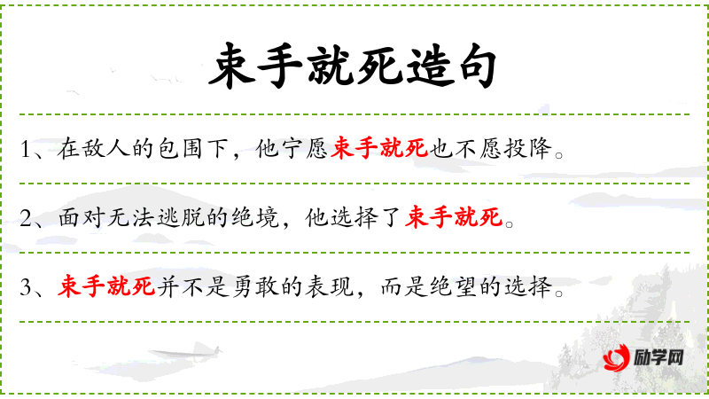 1. 【包围】 - 四面围住:亭子被茂密的松林~着;正面进攻的同时,向敌人的翼侧和后方进攻。