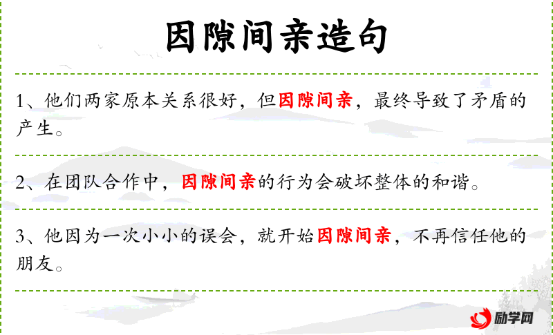 - 因隙间亲:成语,意为因为小矛盾而产生亲近或疏远的行为。