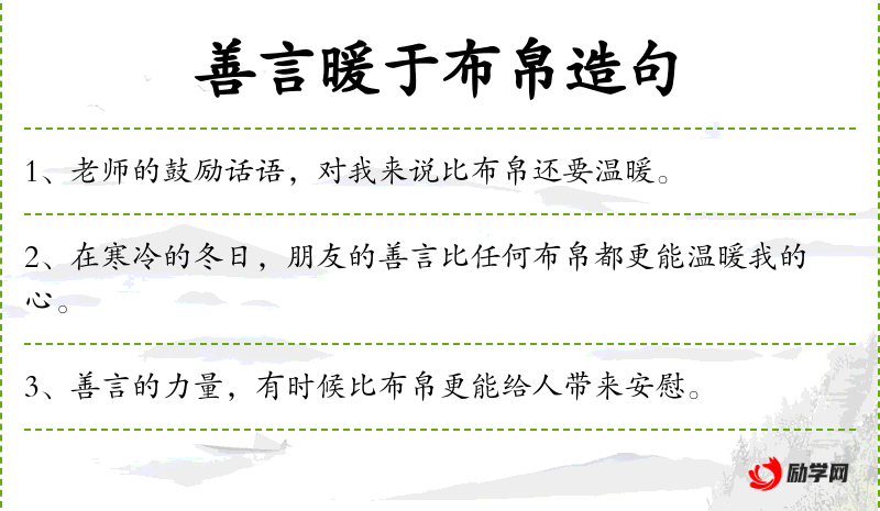 句子:“在寒冷的冬日,朋友的善言比任何布帛都更能温暖我的心。”