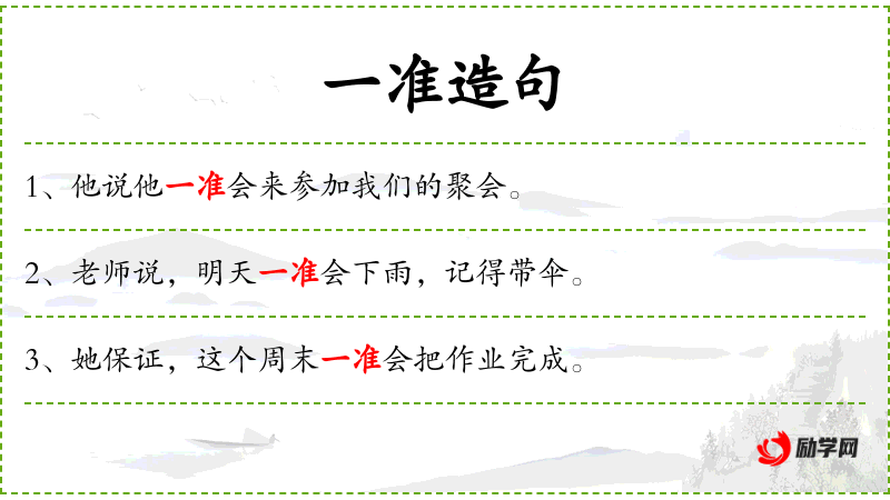 1. 【一准】 - 一定的准则;唯一的标准理有一准|万代一准; 完全遵循、按照一准前式|处置方式一准有关条例; 一定;肯定明天,我一准来|你放心,我一准替你去办。