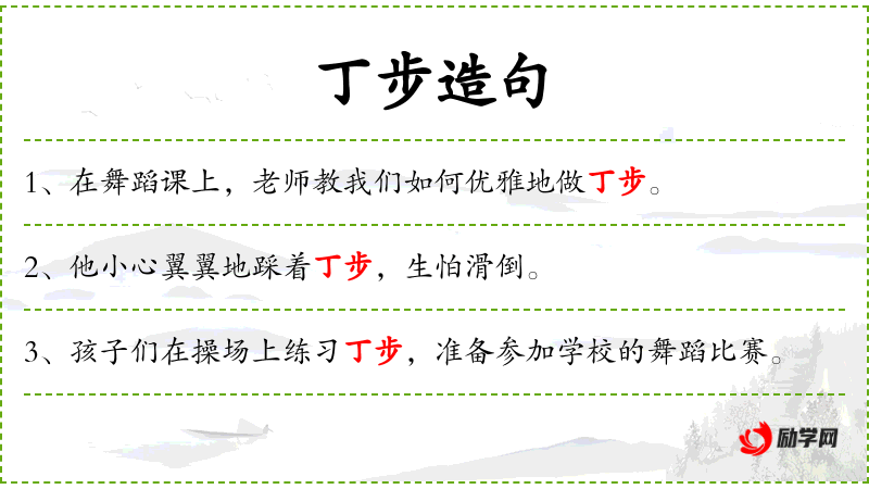 1. 【丁步】 - 方言。置放在溪﹑河浅处以便行人往来的石头墩子。