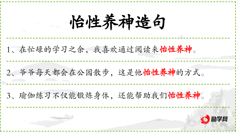 - 怡性养神:指通过某种活动使心情愉悦、精神得到滋养。