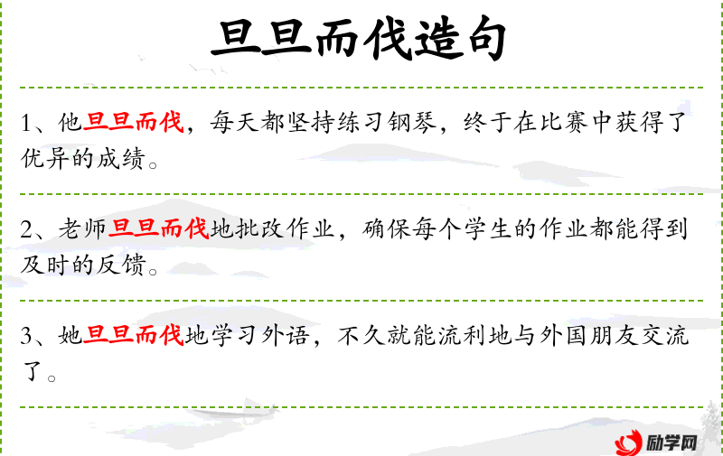 句子:“**员旦旦而伐地训练,准备参加即将到来的比赛。”