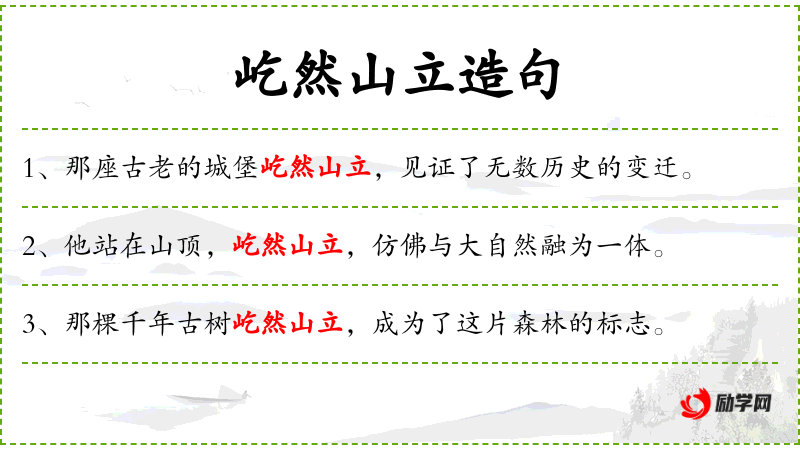 - 谓语:屹然山立,见证了