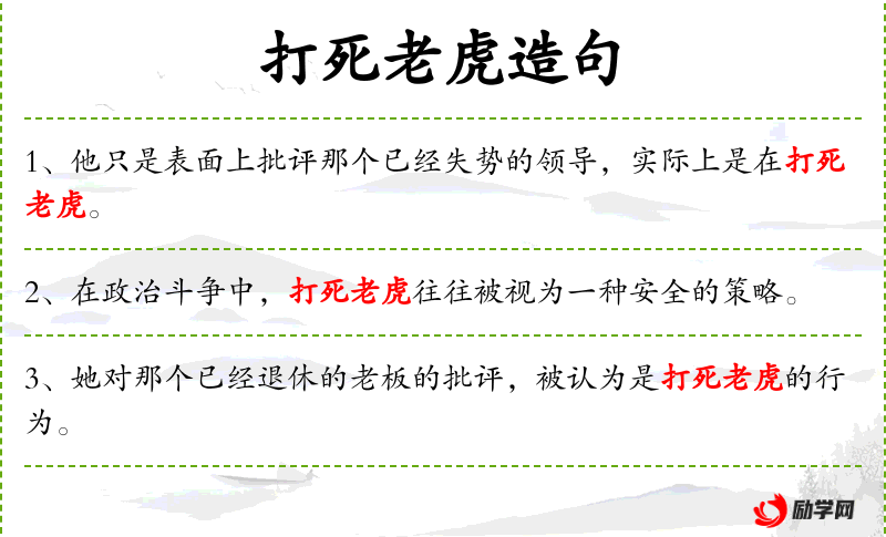 - 打死**:成语,比喻对已经失败或处于弱势的人或事物进行攻击。