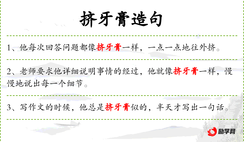 - 状语:学*新知识时、挤牙膏般地、需要很长时间