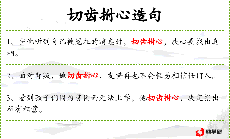 句子:“对于历史上的不公**,老一辈人常常切齿拊心,希望后人能记住教训。”