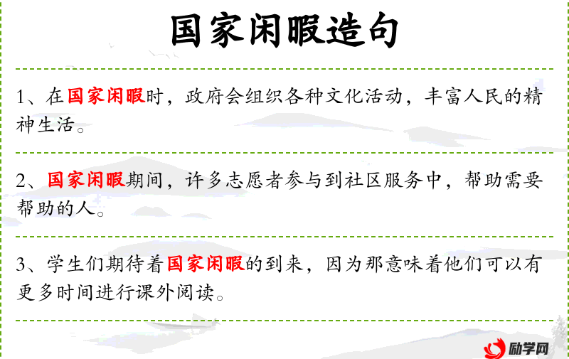 - 国家闲暇的日子里:指国家或社会公共假期或休息日。