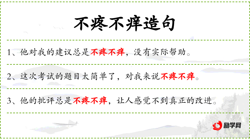 - 使用“不疼不痒”这样的成语增加了表达的隐含意义和语气。