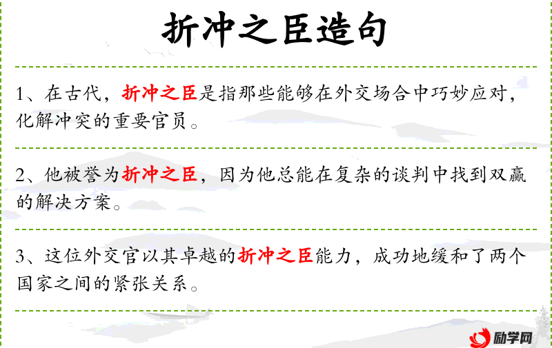 - 宾语:“国际舞台上的折冲之臣”