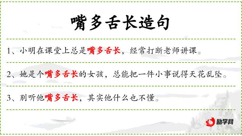 - 嘴多舌长:喋喋不休、唠叨、多嘴