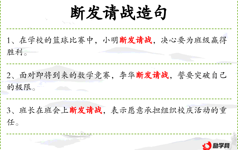 - 李华面对即将到来的数学竞赛,决心断发请战,誓要超越自我。
