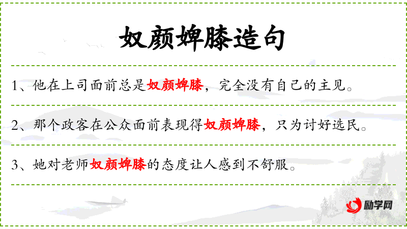 - 谓语:奴颜婢膝