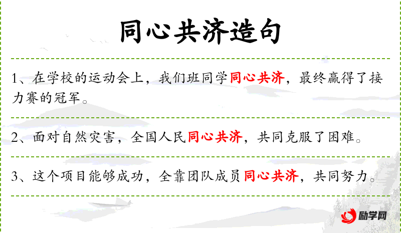 - 同心共济:大家心往一处想,共同努力