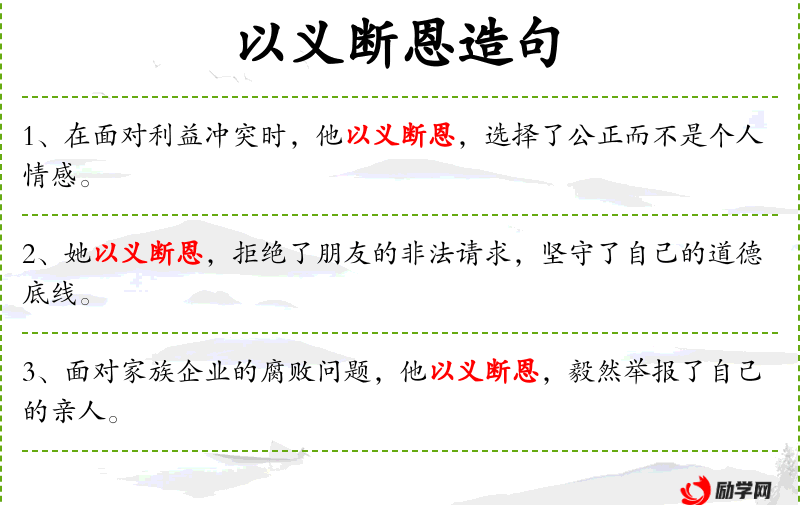 - 文化意义:“以义断恩”在**文化中可能意味着在道德和原则面前,不惜切断与某人的关系。