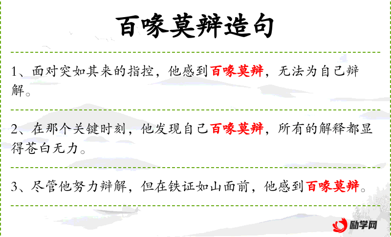 1. 【百喙莫辩】 - 喙:嘴,借指人的嘴。指纵有众多的嘴也不能辩解。同“百口莫辩”。