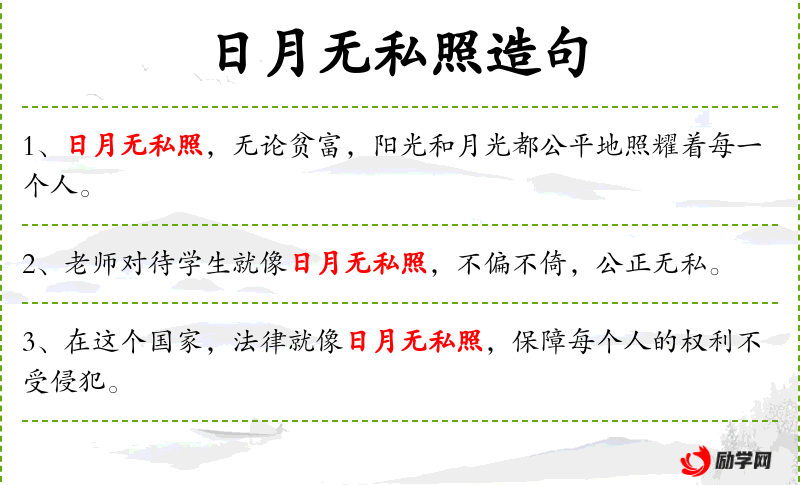 - 日月无私照:比喻父母的爱像日月一样无私地照耀。