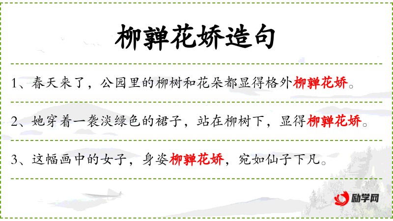3. 【柳亸花娇】 柳丝柔垂,花朵娇妍。比喻女子貌美。
