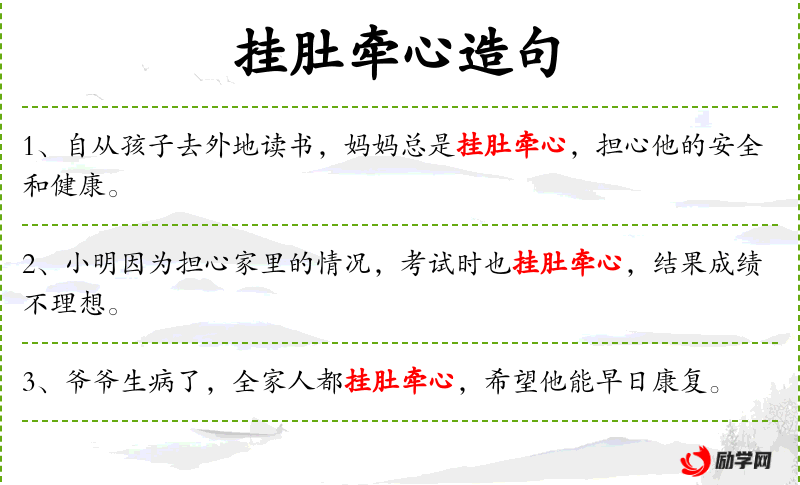 1. 【挂肚牵心】 牵:牵挂。形容忧虑不安的心情。