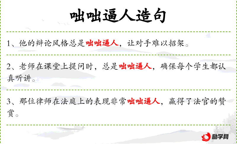 - 咄咄逼人:形容词,形容态度强硬,给人压力。