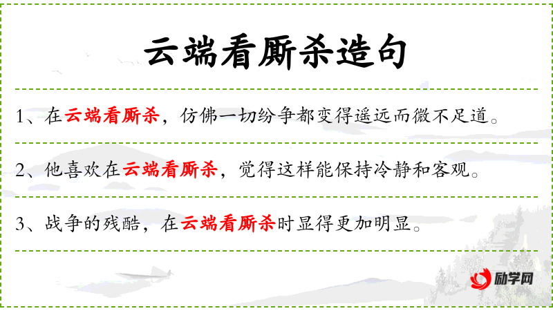 - 状语:在云端看厮杀