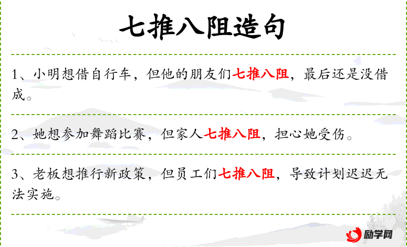 1. 【七推八阻】 比喻有意为难。