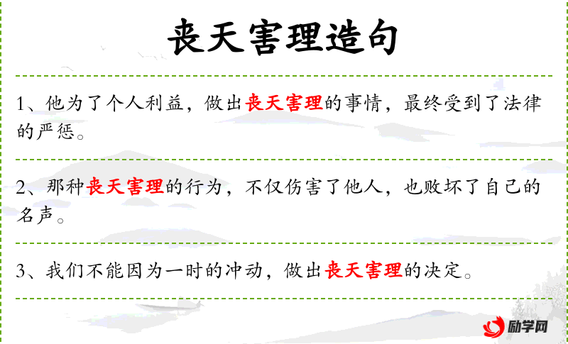 - 丧天害理:形容行为极其恶劣,违背道德和法律。
