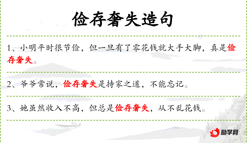 - 俭存奢失:这是一个成语,意思是节俭能够积累财富,奢侈会导致损失。
