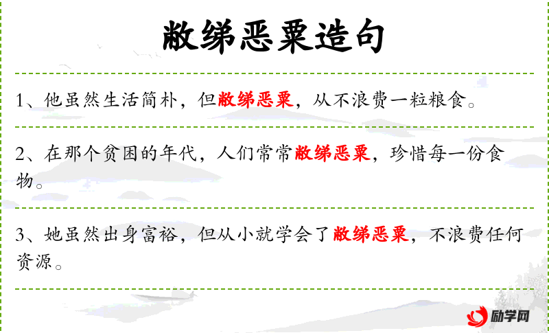 句子:“她虽然出身富裕,但从小就学会了敝绨恶粟,不浪费任何资源。”