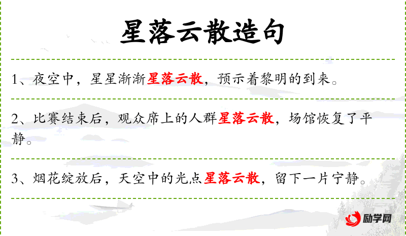 - 星落云散:比喻学生们像星星和云朵一样分散开来,形象地描述了学生们分散的状态。