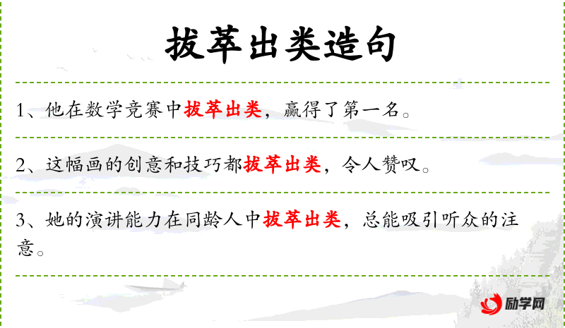 - 拔萃出类:成语,意为在众多中脱颖而出。