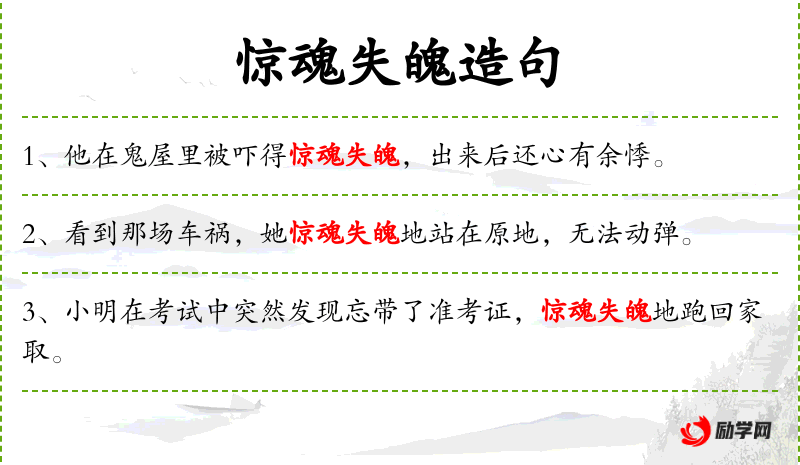 - 惊魂失魄:成语,形容极度惊恐,失去常态。
