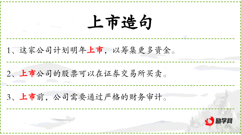 1. 【上市公司】 指所发行的股票经全国性证券管理机构批准可在证券交易所上市交易的股份有限公司。我国公司法规定上市公司的条件有股票经国务院证券管理部门批准向社会公开发行;股本总额不少于5000万元;开业在三年以上并连续盈利;按股本总额向社会公开其发行股份的比例;申请时的最近三年无重大违法行为等。