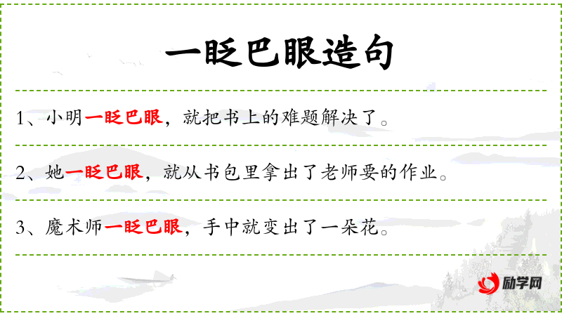 - 反义词:缓慢、迟缓(与“一眨巴眼”相对)