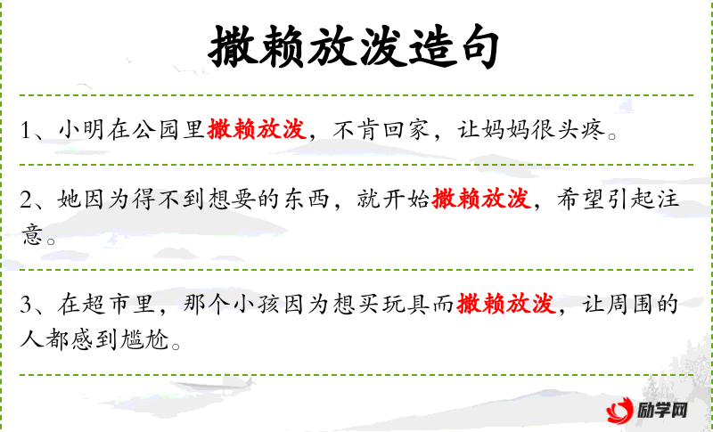 - 撒赖放泼:成语,形容人无理取闹、任性胡为。