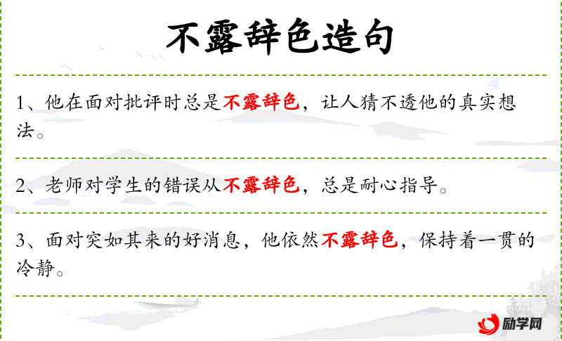 1. 【不露辞色】 - 辞色:言辞神色。不让心里的打算从话音和脸色上流露出来。形容说话沉着老练。