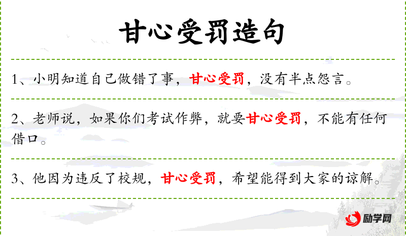 1. 【甘心受罚】 - 甘心:情愿。情愿受到处罚。