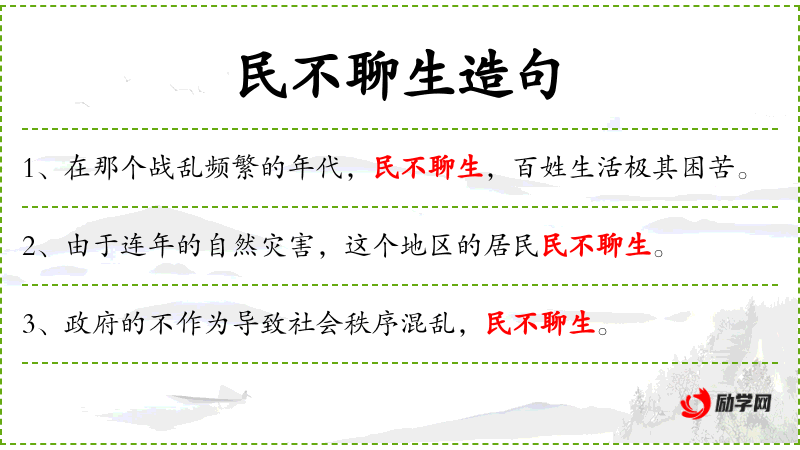 3. 【民不聊生】 聊:依赖,凭借。指老百姓无以为生,活不下去。