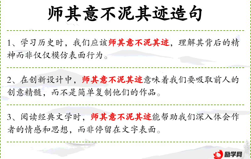 - 师其意不泥其迹:这是一个成语,意为学*时要领会其精神,而不是拘泥于形式。