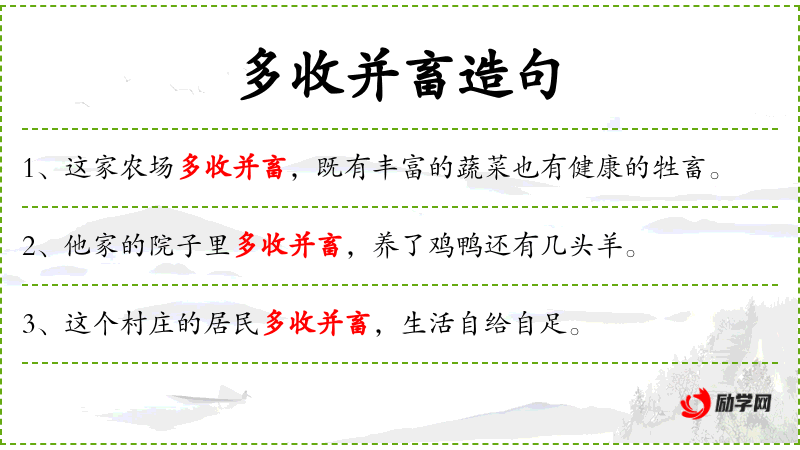 - 自给自足的生活状态是通过多收和并畜实现的,这个村庄的居民做到了这一点。