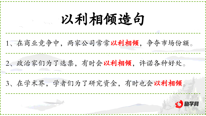 句子:“在体育赛事中,队伍之间为了冠军,也会以利相倾,全力以赴。”