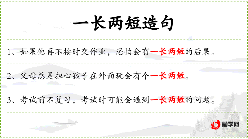 - 一长两短:成语,意思是好坏两种可能的结果。