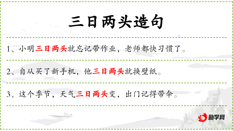 1. 【三日两头】 - 隔一天,或几乎每天。形容经常、频繁。