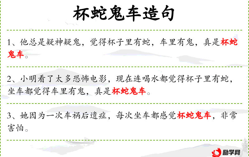 5. 【杯蛇鬼车】 - 指因疑虑、惊惧导致幻觉中产生的怪物。杯蛇,“杯弓蛇影”之省;鬼车,传说中的九头鸟。