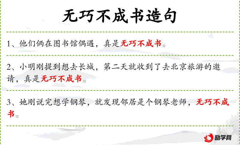 - 无巧不成书:成语,表示事情的发生非常巧合。
